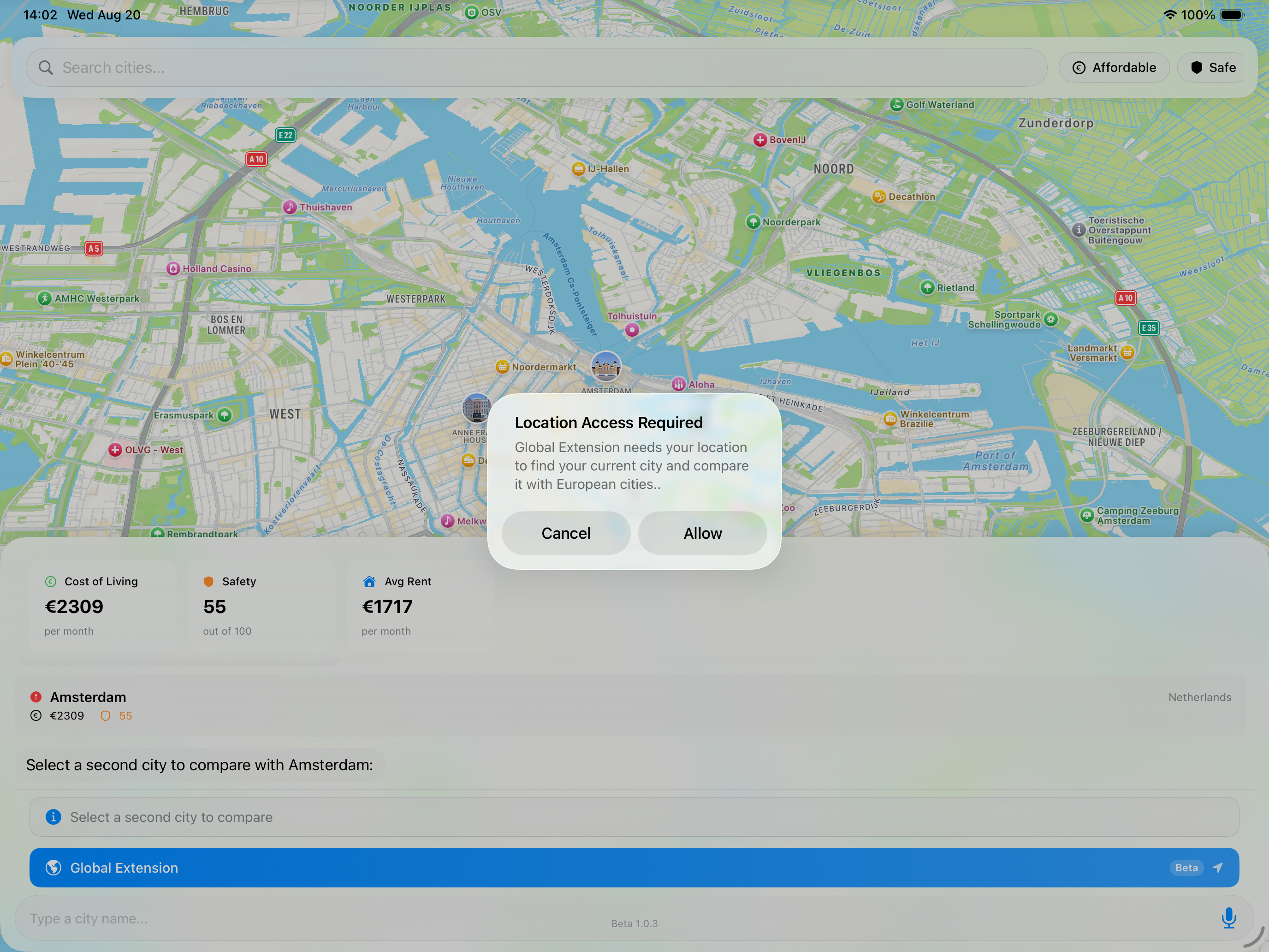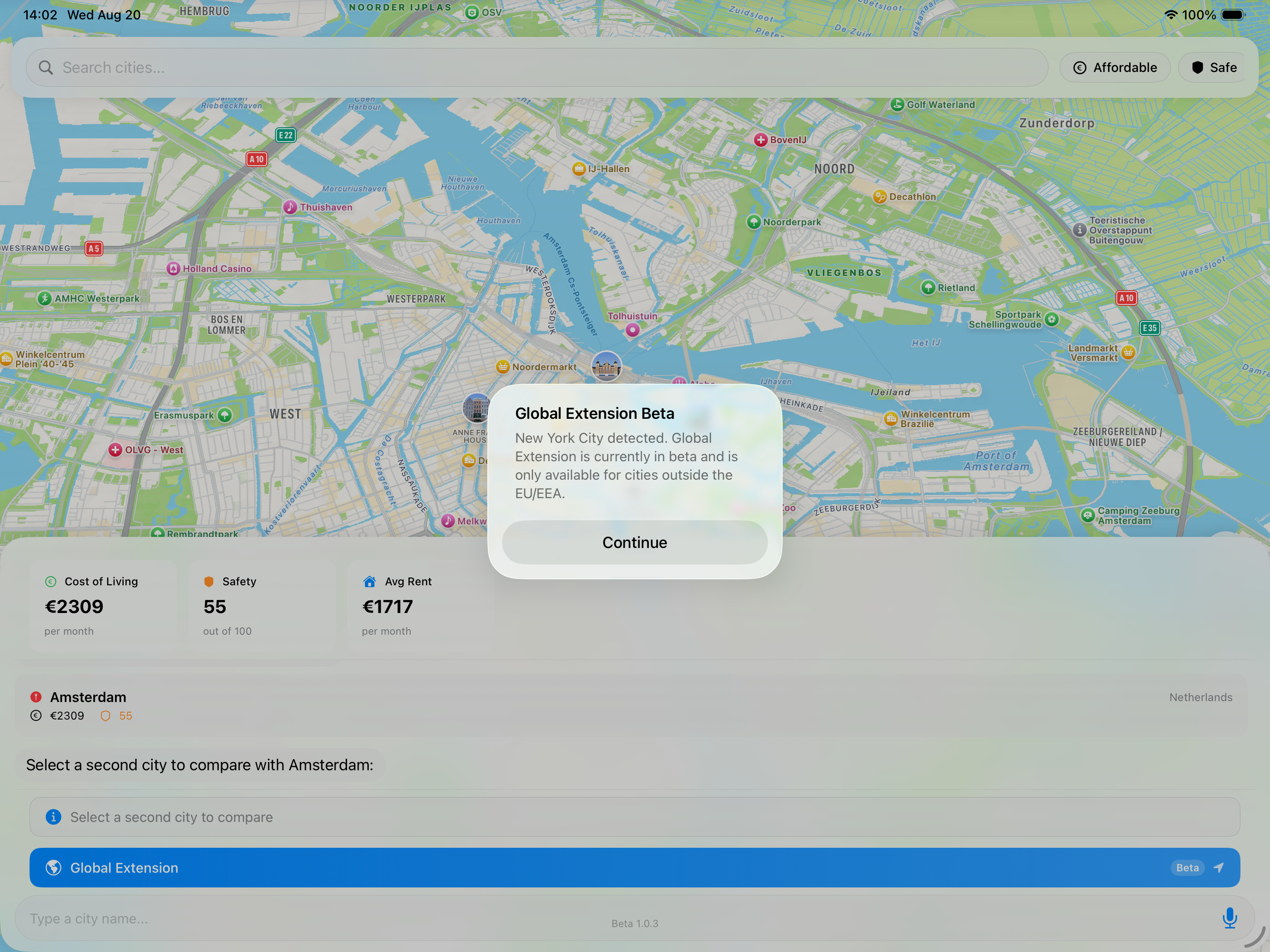 If you reside outside the European Union (EU) or the European Economic Area (EEA), we have an exclusive offer for you. To ensure you can participate, the mEUvy app can determine your current city based on your location. The automatic detection function will seamlessly load data about your city, allowing you to compare it with a city of your choice within the EU or EEA. This feature will be released in beta and we would welcome your feedback.