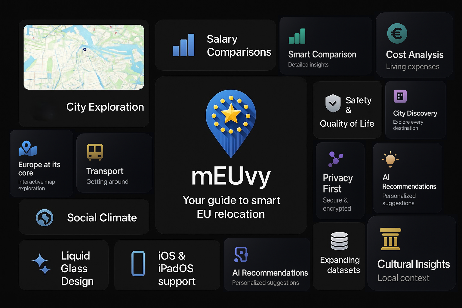 • Career Opportunities: While salary expectations are important, the strength of the local job market is equally crucial. mEUvy highlights thriving industries in each city, helping you align your move with genuine growth opportunities.